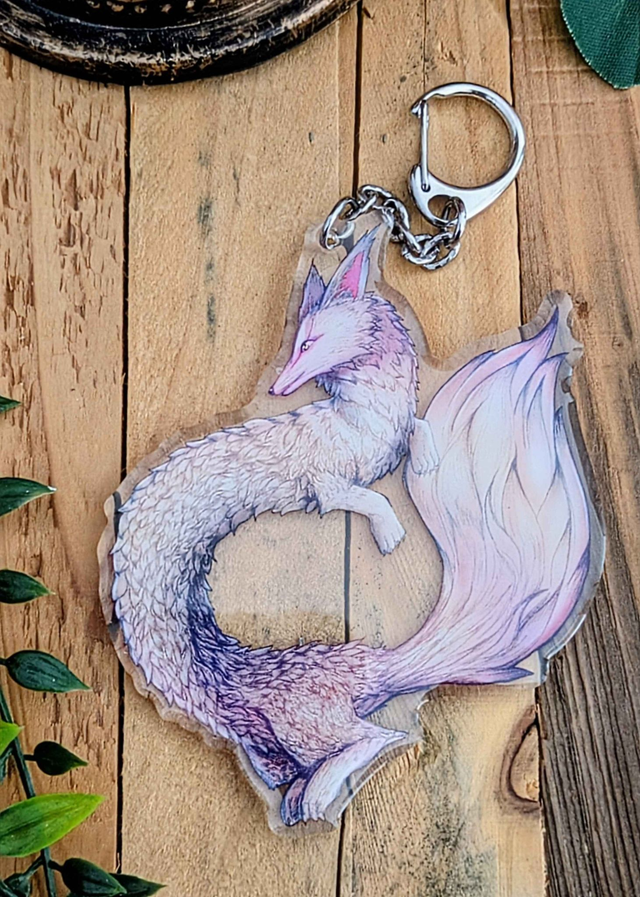 Ce porte-clés représente une créature de mon univers : La striée. Il mesure 8 x 7 cm et est fait en acrylique.